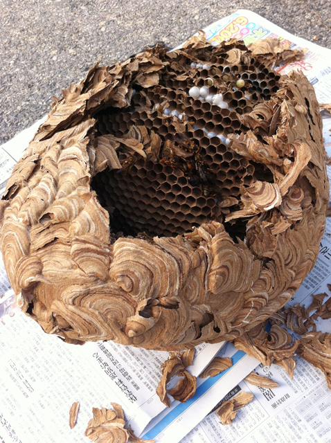 危険度・ダメージの大きいスズメバチ。スズメバチの毒による死者は年間40人以上に上ると言われています。またミツバチの場合でも、決して軽視してはいけません。1匹のハチが人を刺した際に伝達物質が仲間のハチへと伝わり、仲間のハチが大群で攻撃してくる場合があります。また、ハチに1度刺されたことがある場合は、アレルギー反応(アナフィラキシーショック)により、死に至る場合もございます。ハチの巣を見つけたらご自分で処分しようとせず、速やかにご連絡ください。